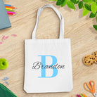 Blue Monogram White Tote Bag