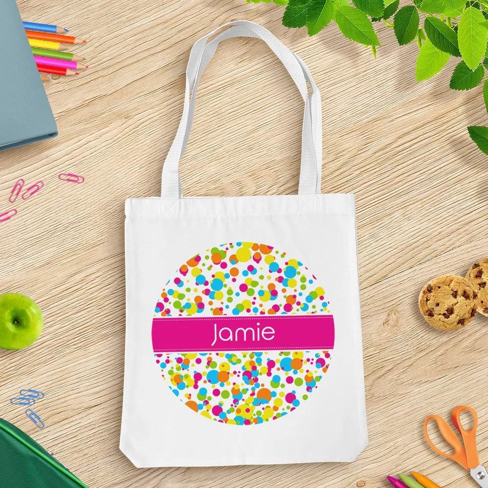 The perfect bag for home or school, personalised with your own name on it. Simply choose your favourite design, then personalise with your name. Made from heavy-duty white canvas material. Each tote bag has reinforced handles that can carry heavy items, like books and school supplies with ease. The long handles make it easy to carry over your shoulder.
