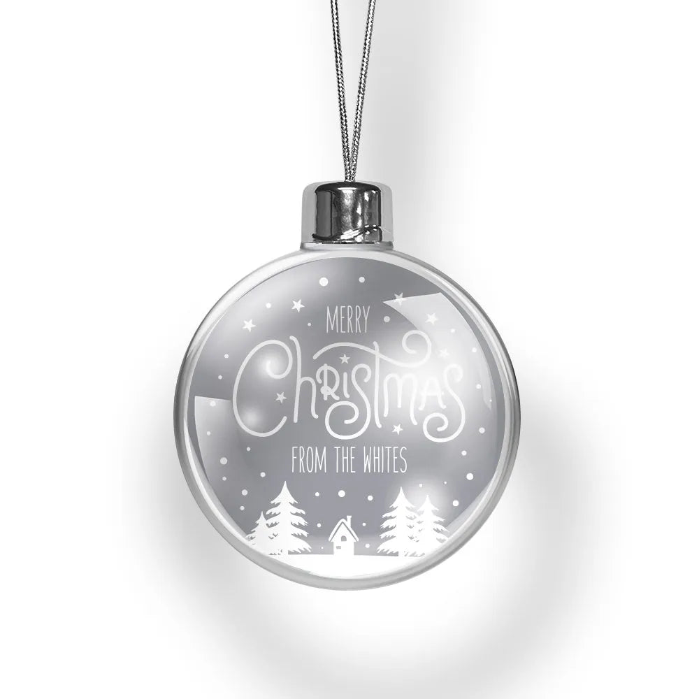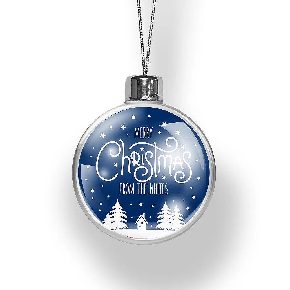 Decorate your Christmas tree with our stunning personalised Christmas Baubles! These beautiful Christmas Baubles are made of clear acrylic and come with screw on cap with silver string ready to hang on the tree.