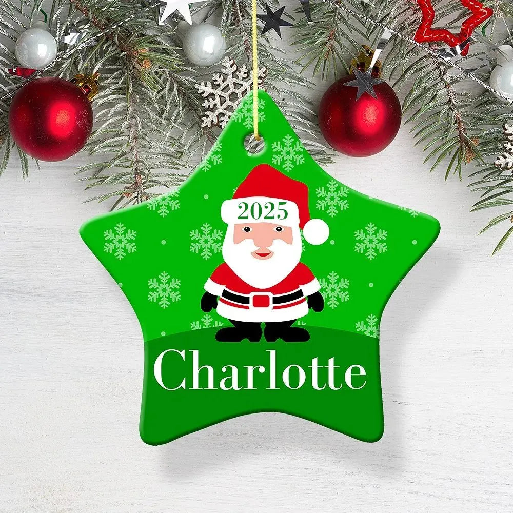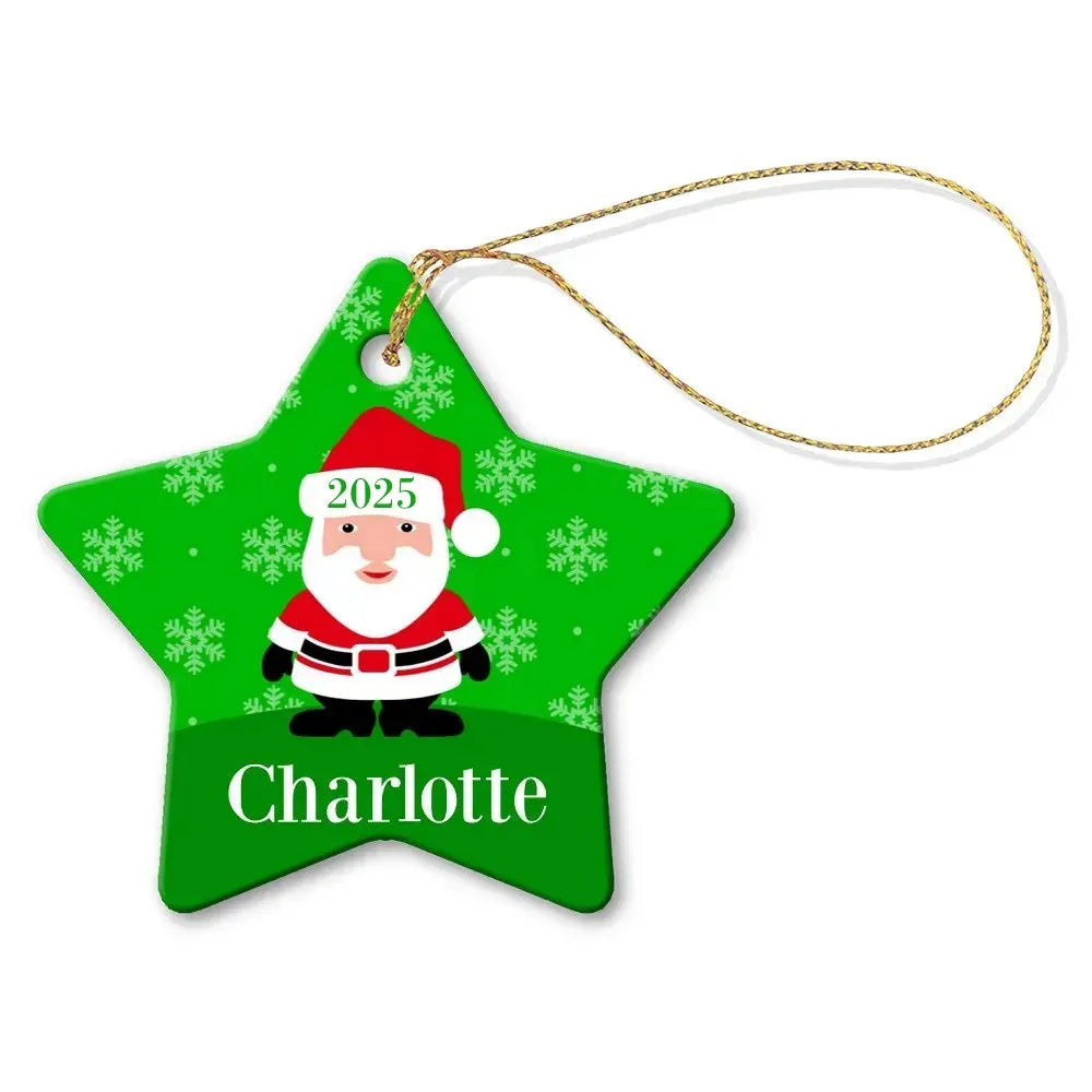 Green Santa Star Porcelain Ornament