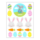 Create your own personalised Easter bucket for your kids or use them for scrapbooking or making Easter cards. Pack includes one large personalised round sticker, 3 bunnies, 3 carrots and 8 eggs. 16 stickers in total per sheet.