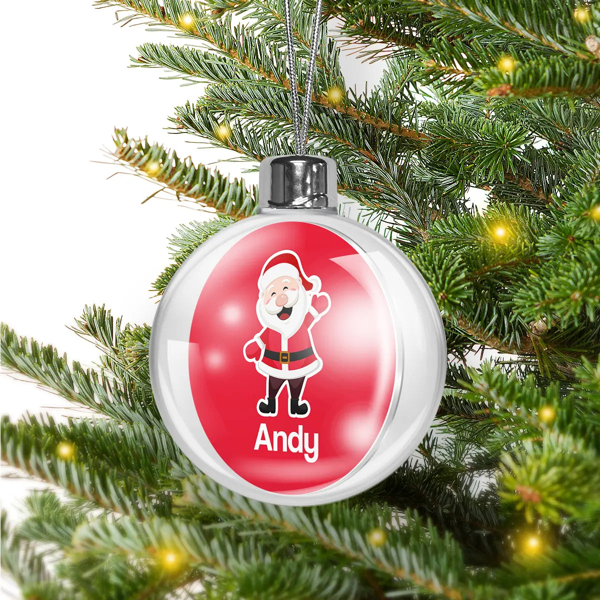 Decorate your Christmas tree with our stunning personalised Christmas Baubles! These beautiful Christmas Baubles are made of clear acrylic and come with screw on cap with silver string ready to hang on the tree.
