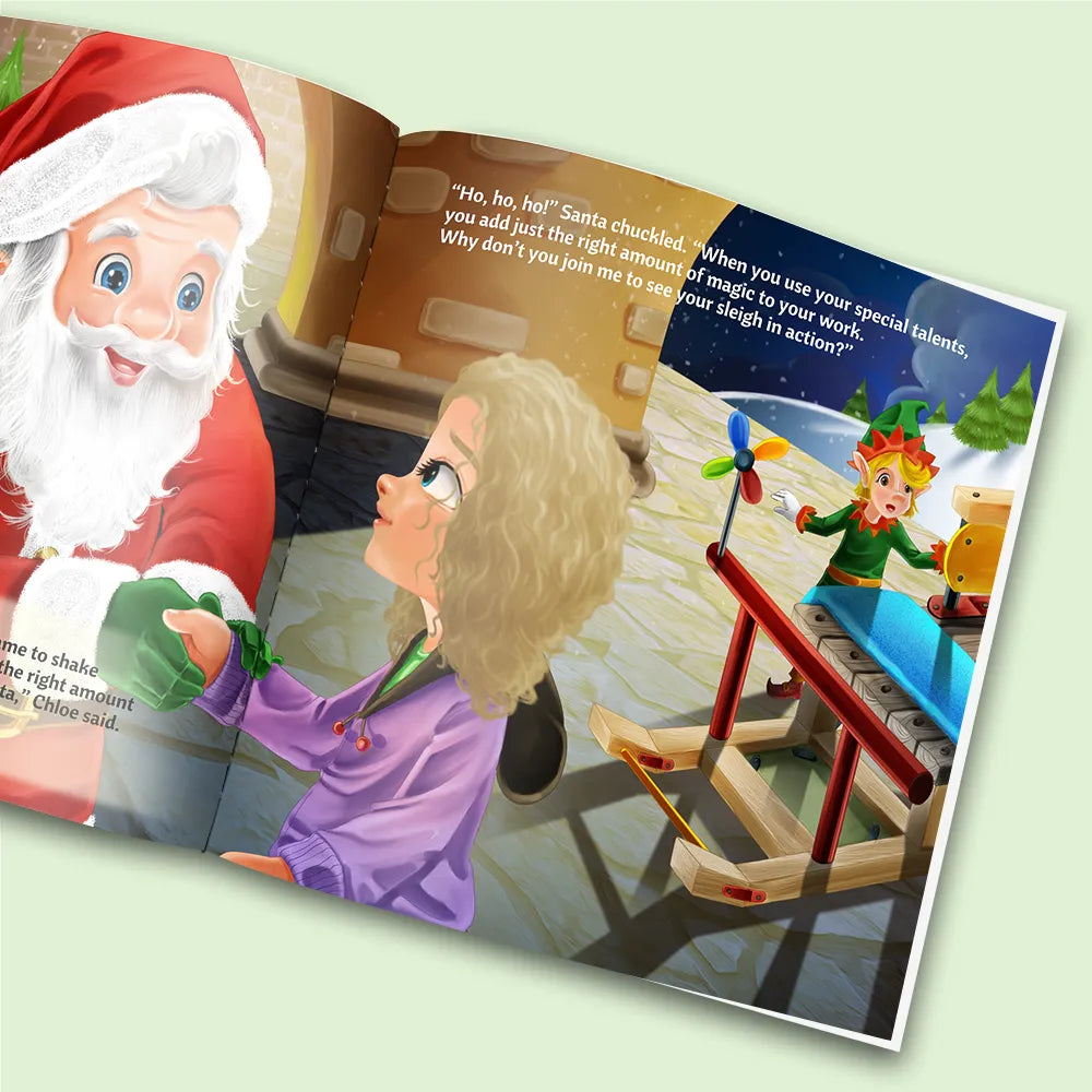 A story about your son or daughter having a special talent for fixing things. Then one day they are asked to build a magic sleigh for a friend, and after it's finished they find out it was for Santa Claus.