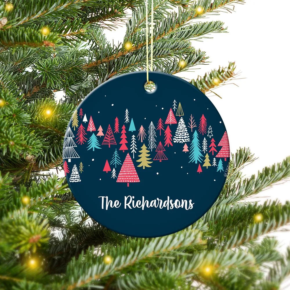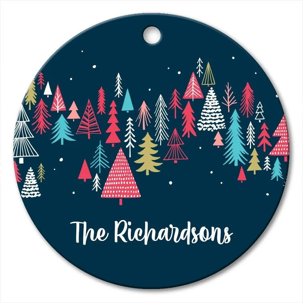Colourful Tree Pattern Round Porcelain Ornament