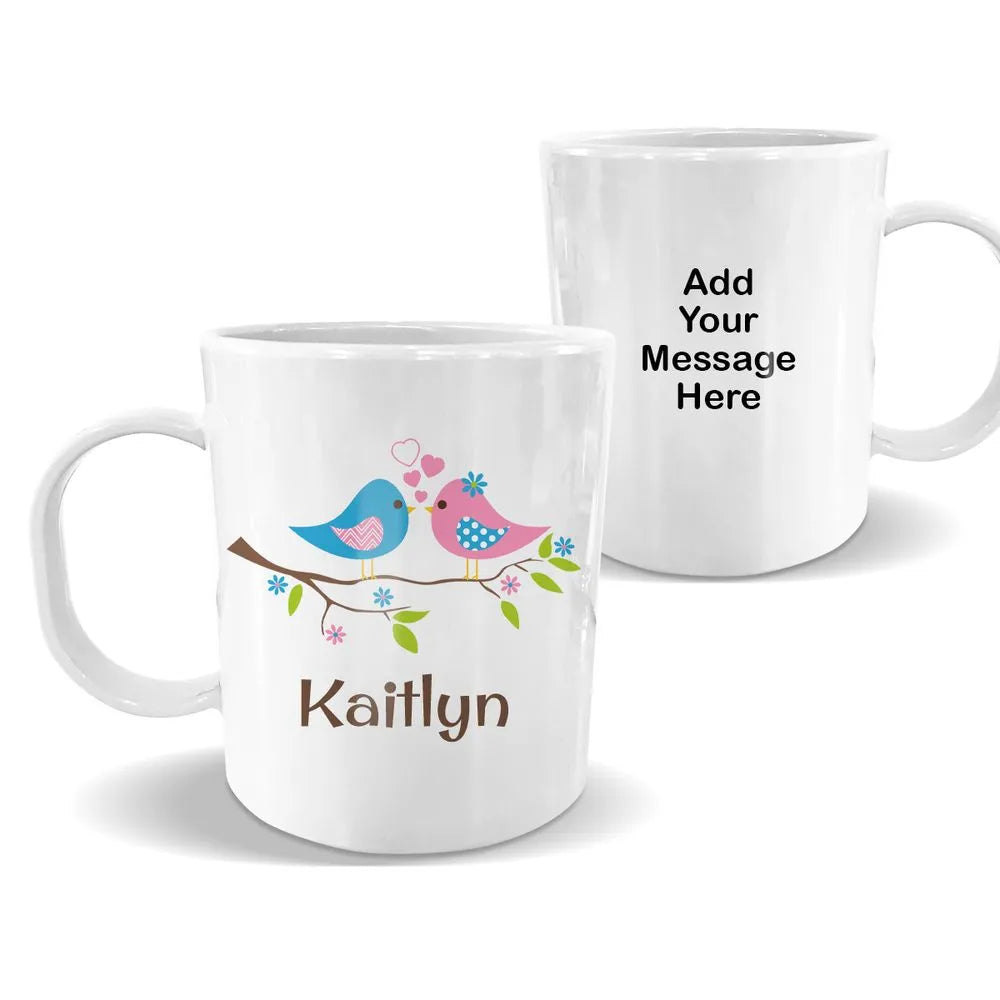 Two Birds White Plastic Mug